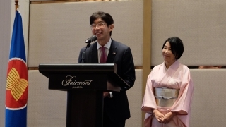 Farewell reception for Ambassador Kiya was held on 12 November. Ambassador Kiya, whose tenure as the Ambassador of Japan to ASEAN was coming to a close, delivered a farewell speech via video message. Ambassador Gerard Ho, Permanent Representative of Singapore to ASEAN, the current ASEAN Coordinating Country for Japan, also gave a remark, expressing his gratitude for Ambassador Kiya’s contributions.